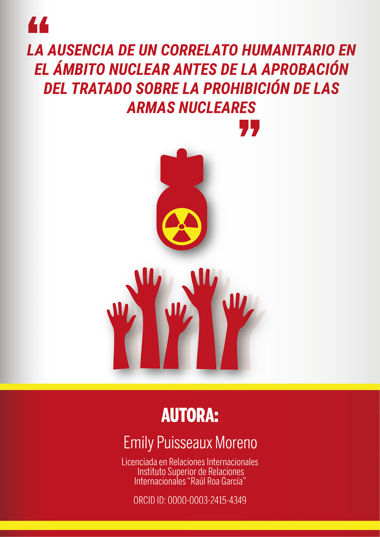 A diferencia de los instrumentos internacionales sobre armamento convencional aprobados en los marcos del desarme humanitario, hasta 2010 los distintos acuerdos y tratados del régimen para la no proliferación y el desarme nuclear se habían inscrito en las denominadas negociaciones para el desarme de seguridad. Su aprobación, por tanto, no había estado distinguida por móviles humanitarios, morales o éticos; sino por el acelerado deterioro del contexto internacional de seguridad y las amenazas al status quo de las principales potencias nucleares. En consecuencia, el tratamiento del desarme nuclear como una cuestión humanitaria revolucionó el debate sobre las armas nucleares y condujo, en cierta medida, a la aprobación en 2017 de una nueva norma internacional: el Tratado sobre la Prohibición de las Armas Nucleares (TPAN). En virtud de lo anterior, el presente artículo pretende examinar las causas de la ausencia, hasta 2010, de un correlato humanitario en el ámbito nuclear.
